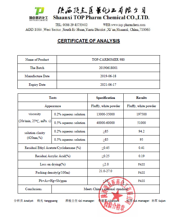 Product Name: Carbomer 980 Carbopol 980 Powder